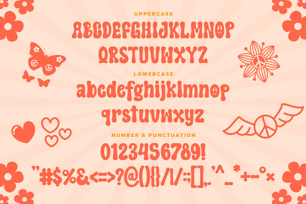 Hippie Groovy is a cool boho-style display font with charming letters and hippie-style dingbats.